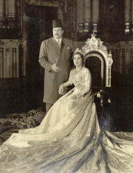 لحظات وفتح باب الصالون الجانبي ودخلت منه الملكة ناريمان وهي ترتدي ثوبا رماديا من الحرير قصير الأكمام وعلي وجهها ابتسامة جميلة وخلفها كان العريس الدكتور أدهم النقيب في بدلة رمادية.