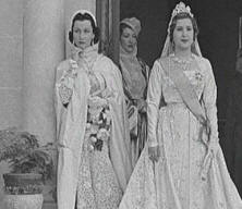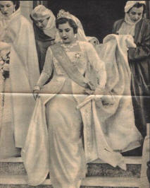 الملكة ناريمان راحلة من بيتها إلى القصر الملكي .. ترتدي فستان زفافها الذي كان يحتوي على 20 ألف قطعة ماس .. واستغرق صُنعه 4000 ساعة