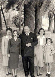 الملك فاروق مع زوجته الجديدة الملكة ناريمان .. ومعهم الـ 3 بنات من الملكة فريدة زوجته الأولى .. وهم فريال وفوزية وفادي - وقد توفت فوزية في سويسرا .. وتم دفنها في مسجد الرفاعي - وبعد عدة سنوات من الزواج .. طلبت الملكة ناريمان الطلاق وتنازلت عن نفقتها الشهرية .. وتزوج الملك فاروق زواجه الثالث الأميرة فريال إبنة الملك فاروق وهي الأبنة الكبرى ولها أختان هن: فوزية وفادية " وقد توفيتا في سويسرا ، الأولى لم تتزوج والثانية تزوجت من أمير روسي أسلم ولديها منه ولدين.