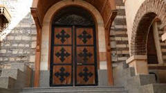 ققداسة البابا شنودة الثالث فى مجمع راهبات دير مار جرجس بمصر القديمة - الكرازة السنة 37 العددان3-4 6فبرابر2008 م ام قداسة البابا شنودة الثالث صباح الثلاثاء 27/1/2009م بزيارة ومباركة دبر مار جرجس بمصر القديمة للراهبات وقام قداسته بإفتتاح الكنيسة الأثرية بعد ترميمها وتجديدها وقد أعجب قداسته بما تم من إنجازة كذلك قام قداسته بسيامة أربع راهبات جدد بأسماء أنطونه وماريا زثيزدوره ومريم ، كما قام قداسته بإلباس خمسة من المبتدئات زى طالبات الرهبنة ، إشترك مع قداسته فى صلوات السيامة أصحاب النيافة الأنبا يوأنس وألأنبا رافائيل والأنبا أرميا - الكرازة السنة 37 العددان3-4 6فبرابر2008 م | أيقونة أثرية من القرن الثامن عشر الميلادي من دير الشهيد العظيم مارجرجس للراهبات بمصر القديمة,توضح صليبا في الوسط يعلوه زخرفة نباتية علي ما يشبه القبو وتقف الملكة هيلانة إلي يمين الصليب والملك قسطنطين إلي شماله,وكل منهما يشير بيده إلي الصليب بينما يمسك بيده الثانية قضيبا ومكتوب بجواره قضيب الملوك وفي الوسط عبارة السلام للصليب سلاح المؤمنين وعلي رأس كل منهما تاج وتحوطه الهالة النورانية.الباحث الأثري جرجس داود وطنى 15/3/2009م الينة 51 العدد 2464 |