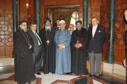 شيخ الازهر يطالب مسلمي أطفيح بإعادة بناء كنيسة الشهيدين في مكانهافضيلة الإمام الأكبر د. أحمد الطيب، شيخ الأزهر الشريف، بنيافة الأنبا ثيؤدسيوس، أسقف عام الجيزة، والسيد هاني عزيز، أمين عام جمعية محبي مصر السلام، والقمص يوحنا، وكيل مطرانية الجيزة، والقمص عبد المسيح بسيط، كاهن كنيسة العذراء الأثرية؛ وأستاذ الكتاب المقدس بالكلية الأكليريكية، 8 مارس 2011. المصرى اليوم 8/3/2011م عماد خليل طالب الإمام الأكبر الدكتور أحمد الطيب، الثلاثاء، مسلمي مركز أطفيح بإعادة بناء كنيسة الشهيدين، التي أحرقها مسلمون غاضبون في ظروف غامضة،في مكانها، وذلك على هامش لقائه مع الأنبا ثيؤدسيوس أسقف عام الجيزة وعدد من القيادات الكنيسة في المحافظة واستقبل الطيب بمشيخة الأزهر، إلى جانب ثيؤدسيوس، كلاً من السيد هاني عزيز أمين عام جمعية محبي مصر السلام، والقمص يوحنا وكيل مطرانية الجيزة، والقمص عبد المسيح بسيط كاهن كنيسة العذراء الأثرية بمسطرد وأستاذ الكتاب المقدس بالكلية الإكليريكية. وبعد اللقاء قال الطيب إن هذه هي المرة الأولى في التاريخ الإسلامي التي تُهدم فيها كنيسة، الأمر الذي يرفضه كل المسلمين المستنيرين قبل الأقباط. وأكد مطالبته لأهالي أطفيح من المسلمين على ضرورة إعادة بناء الكنيسة في مكانها، تجنبًا لأي ظواهر سلبية وأثار حرق الكنيسة من قِبل مجهولين يعتقد على نطاق واسع أنهم متطرفون إسلاميون غضب مسيحيين تظاهروا أمام مبنى الإذاعة والتلفزيون الاثنين، وطالبوا المشير محمد حسين طنطاوي، رئيس المجلس الأعلى للقوات المسلحة، بالتدخل لرفع «الظلم» عنهم وتعهد المشير طنطاوي رئيس المجلس الأعلى للقوات المسلحة بإعادة بناء الكنيسة في موقعها. |