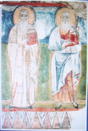 ذكر الباحث الأثري جرجس داود جريدة وطنى بتاريخ 4/6/2006م السنة 48 العدد 2319 رسم جداري من دير السيدة العذراء(السريان)بوادي النطرون من القرن الثامن الميلادي يمثل القديس بسنتي الذي يتبع اسمهالمؤسسوتشير أيضا إلي المجتمع الذي كان يعيش به وهو الدير البحري(القرن السادس الميلادي)يرتدي ملابس كهنوتية مزينة بصلبان ويمسك بكلتا يديه الكتاب المقدس,وحول رأسه الهالة النوارنية وعلي الجانب الأيمن من الصورة يقف القديس أباكير المعروف بالطبيب ويحمل بيده اليسري صندوق الأدوية,وباليد الأخري أداة طبية(مشرط)وحول رأسه الهالة النورانية,ويرتدي ملابس حمراء تصل في الطول إلي القدم وفوقها عباءة أقصر منها.وأعلي الصورة الاسم بالقبطية.القديس بسنتي -القديس أباكير المعروف بالطبيب