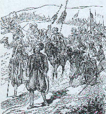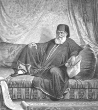 | | ولد محمد علي في سنة ١٧٦٩م في مدينة «قولة» من ثغور مقدونيا حيث ولد الإسكندر الأكبر وبطلميوس الأول وكان أبوه «إبراهيم أغا» هو رئيس الحرس المنوط بخفارة الطريق في البلدة وكان له سبعة عشر ولدا لم يعش منهم سوي محمد علي وصار يتيم الأبوين وهو في الرابعة عشرة من عمره فكفله عمه طوسون الذي مات أيضا فكفله «الشوربجي» صديق والده، فأدرجه في سلك الجندية فأبدي محمد علي شجاعة وبسالة وحسن نظر وتصرف، وحين قررت الدولة العثمانية إرسال جيش إلي مصر لانتزاعها من أيدي الفرنسيين كان محمد علي هو نائب رئيس الكتيبة الألبانية، وكان رئيس الكتيبة هو ابن حاكم قولة الذي لم يكد يصل إلي مصر حتي قرر أن يعود إلي بلده فأصبح محمد علي هو قائد الكتيبة إلي أن تولي حكم مصر.*****************************************************الجزء التالى من يوميات الجبرتى ***************************************************** يوم السبت 25 شهر ذي القعدة سنة 1217 هـ - 19 مارس 1803 م حضر أحمد باشا والي دمياط وكانوا أرسلوا له طوخًا ثالثًا وأنه يحضر ويتوجه لمحافظة مكة وكذلك قلدوا آخر باشاوية المدينة يسمى أحمد باشا وضعوا لهما عسكرًا يسافرون صحبتهم للمحافظة من الوهابيين وأخذوا في التشهيل  وفي هذه الأيام كثر تشكي العسكر من عدم الجامكية والنفقة فإنه اجتمع لهم جامكية نحو سبعة أشهر وقد قطع عليهم الباشا رواتبهم وخرجهم لقلة الإيراد وكثرة المطلوبات وكراهته لهم فصار كبراؤهم يرترددون ويكثرون من مطالبة الدفتردار حتى كان يهرب من بيته غالب الأيام وأشيع بالمدينة قيام العسكر وأنهم قاصدون نهب أمتعة الناس فنقل أهل الغورية وخلافهم بضائعهم من الحوانيت وامتنع الكثير منهم من فتح الحوانيت وخافهم الناس حتى في المرور. ( الصورة المقابلة : العسكر يهاجمون الحوانيت والبقالة والدكاكين ). وخصوصًا أوقات المساء فكانوا إذا انفردوا بأحد شلحوه من ثيابه وربما قتلوه وكذلك أكثروا من خطف النساء والمردان. وفي ليلة الثلاثاء28 هر ذي القعدة سنة 1217 هـ - 22 مارس 1803 م كان انتقال الشمس لبرج الحمل وأول فصل الربيع وفي تلك الليلة هبت رياح شمالية شرقية هبوبًا شديدًا مزعجًا واستمرت بطول الليل قبل افجر اشتد هبوبها ثم سكنت عند الشروق وسقط تلك الليلة دار بالحبالة بالرميلة ومات بها نحو ثلاثة أشخاص وداران أيضًا بطولون وغير ذلك حيطان وأطارف أماكن قديمة ثم تحولت الريح غربية قوية وفيه وصل الأمراء المصرلية الى الفيوم فأخذوا كلفًا ودراهم كثيرة فردوها على البلاد ثم سافروا الى الجهة القبلية. وفيه ورد الخبر بأن المراكب التي بها ذخيرة أمير الحاج بالقلزم المتوجهة الى الينبع والمويلح غرقت بما فيها ومركب الجميعي من جملتها. وفيه حضر مصطفى بينباشا الذي كان أيام الوزير بمصر الى بلبيس وهو موجه بطلب مبلغ دراهم فأقام ببلبيس حتى أرسلوها له ثم ذهب الى دمياط وصحبته نحو الأربعمائة من الأرنؤد ليسافر من البحر. وفيه توجه المحروقي والكثير من الناس لزيارة سيدي أحمد البدوي لمولد الشرنبلالية وأخذ معه عدة كثيرة من العسكر خوفًا من العربان ووصل إليه فرمان بطلب دراهم من أولاد الخادم ومن أولاد البلد فدلوا على مكان لمصطفى الخادم فاستخرجوا منه ستة آلاف ريال وطلبوا من كل واحد من أولاد عمه مثلها. وفى يوم الأثنين 4 شهر ذو الحجة سنة 1217 هـ - 28 مارس 1803 م استهل بيوم الجمعة في يوم الاثنين رابعه قتلوا شخصًا عسكريًا نصرانيًا عند باب الخرق قتله أغات التبديل بسبب أنه كان يقف عند باب داره بحارة عابدين هو ورفيقان له ويخطفون من يمر بهم من النساء في النهار الى أن قبض عليه وهرب رفيقاه. وفيه أيضًا أخرجوا من دار بحارة خشقدم قتلى كثيرة نساء ورجالًا من فعل العسكر. وفيه عدى ابراهيم باشا الى بر الجيزة. وفي يوم الأحد 10 شهر ذو الحجة سنة 1217 هـ - 3 أبريل 1803 م كان عيد الأضحى في ذلك اليوم حضر من الأمراء القبالي مكاتبة على يد الشيخ سليمان الفيومي خطابًا للمشايخ فأخذها بختمها وذهب بها الى الباشا ففتحها واطلع على ما فيها ثم طلب المشايخ فحضروا إليه وقت العصر. وفي يوم الجمعة 15 شهر ذو الحجة سنة 1217 هـ - 8 أ