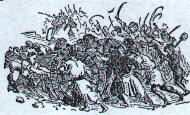 | | وفي يوم 21 شهر صفر 1218 هـ - 12 يونية 1803 م مر الوالي والمناداة أمامه على الأتراك والانكشارية والبشناق والسجمان بالخروج من مصر والتحذير لمن آواهم أو ثاواهم وكلما صادف في طريقه شخصًا من الأتراك قبض عليه وسأله عن تخلفه فيقول أنا من المتسببين والمتأهلين من زمان بمصر فيطلب منه بينة على ذلك ويسلمه عسكر الأرنؤد فيودعونه في مكان مع أمثاله حتى يتحققوا أمره. وفيه مر بعض المماليك بجهة الميدان ناحية باب الشعرية فصادفوا جماعة من العسكر المذكورين يحملون متاعًا لهم فاشتكوا بهم وأرادوا أخذ سلاحهم ومتاعهم فمانعوهم وتضاربوا معهم فقتل بينهم شخصان من الانكشارية وشخصان من المماليك أحدهما فرنساوي. حادثة الجوارى السود وفيه حضر أيضًا ثلاثة من المماليك الى وكالة الصاغة الى رجل رومي ططري وسألوه عن جواري سود عنده لمحمد باشا وأنهم يطلبونهن لعثمان بك البرديسي فأنكر ذلك وشهد جيرانه أنهن ملكه واشتراهن ليتجر فيهن فلم يزالوا حتى أخذوا منه ثلاثة على سوم الشراء وذهب معهن فلما بعدوا عن الجهة فزعوا عليه وطردوه وذهبوا بالجواري فذهب ذلك الططري الى محمد علي فأرسل الى البرديسي ورقة بطلب الجواري أو ثمنهن ففحص عنهن حتى ردهن الى صاحبهن ( الصورة المقابلة : مرسوم بها حادثة الجوارى السود ) . وفيه حضر أيضًا جماعة من المماليك الى بيت عثمان أفندي بجوار ضريح الشيخ الشعراني وهو من كتبة ديوان محمد باشا فأخذوا خيله وسلاحه ومتاعه التي بأسفل الدار. وفي يوم الجمعة 19 شهر صفر 1218 هـ - 10 يونية 1803 م نهبوا دار أحمد أفندي الذي كان شهر حوالة وكاشف الشرقية في العام الماضي فأخذوا جميع ما عنده حتى ثيابه التي على بدنه وقتلوا خادمه على باب داره قتله الوالي زاعمًا أنه هو الذي دل عليه. وفي يوم السبت 20 شهر صفر 1218 هـ - 11 يونية 1803 م مر سليم آغا وأمامه المناداة على الأغراب الشوام والحلبية والرومية يجتمعون بالجمالية يوم تاريخه فلم يجتمع منهم أحدز وفي يوم الأحد 21 شهر صفر 1218 هـ - 12 يونية 1803 م حضر الشريف عبد الله ابن سرور وصحبته بعض أقاربه من شرفاء مكة وأتباعهم نحو ستين نفرًا وأخبروا أنهم خرجوا من مكة مع الحجاج وأن عبد العزيز بن مسعود الوهابي دخل الى مكة من غير حرب وولى الشريف عبد المعين أميرًا على مكة والشيخ عقليًا قاضيًا وأنه هدم قبة زمزم والقباب التي حول الكعبة والأبنية التي أعلى من الكعبة وذلك بعد أن عقد مجلسًا بالحرم وباحثهم على ما الناس عليهم من البدع والمحرمات المخالفة للكتاب والسنة وأخبروا أن الشريف غالبًا وشريف باشا ذهبا الى جدة وتحصنا بها وأنهم فارقوا الحجاج في الجديدة. وفيه كتبوا عرضحالين أحدهما بصورة ما وقع لمحمد باشا مع العساكر ثم قيام الانكشارية وقتلهم لطاهر باشا ثم كرة الأرنؤد على الانكشارية لما أثاروا الفتنة مع أحمد باشا حتى اختلت أحوال المدينة وكاد يعمها الخراب لولا قرب الأمراء المصرلية وحضورهم فسكنوا الفتنة وكفوا أيدي المتعدين والثاني يتضمن رفع الإحداثات التي في ضمن الأوامر التي كانت مع الدفتردار التي تقدمت الإشارة إليها. وفيه عزم الأمراء على التوجه الى جهة بحري فقصد البرديسي وصحبته محمد بك تابع محمد بك المنفوخ جهة دمياط ومعهم محمد علي وعلي بك أيوب وغيرهم وصحبتهم الجم الكثير من العساكر والعربان ولم يتخلف إلا ابراهيم بك وأتباعه والحكام وسافر سليمان كاشف البواب الى جهة رشيد وصحبته عساكر أيضًا. وفي يوم الثلاثاء 23 شهر صفر 1218 هـ - 14 يونية 1803 م عدى الكثير الى البر الشرقي. وفي يوم الأربعاء 25 شهر صفر 1218 هـ - 16 يونية 1803 م قدم جاويش الحجاج بمكاتيب العقبة وأخبروا بموت الكثير من الناس بالحمى والإسهال وحصل لهم تعب شديد من الغلاء أيضًا ذهابًا وإيابًا ومات الشيخ أحمد العريشي الحنفي ودفن بنبط ومات أيضًا محمد أفندي باش جاجرت ودفن بالينبع والشيخ علي الخياط الشافعي. وفيه عدى ابراهيم بك الى قصر العيني وركب مع البرديسي الى جهة الحلي وودعه ورجع الى قصر العيني فأقام به وجلس ابنه مرزوق بك في مضرب النشاب واستمر وكيل الألفي مقيمًا بقصر الجيزة. 