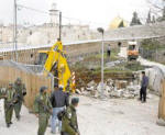 المحتلة عام1948 أن الجرافات الإسرائيلية بدأت هدم باب المغاربة بالمسجد الأقصي, ودعا إسماعيل هنية رئيس الوزراء الفلسطيني الشعب إلي أن يهب لحماية المسجد, بينما دعا الشيخ تيسير التميمي قاضي قضاة فلسطين إلي عقد قمة إسلامية عاجلة , وقد أعرب السيد أحمد أبو الغيط عن بالغ القلق والاستياء إزاء ما تقوم به السلطات الإسرائيلية, وطالبها وبالتوقف فورا عن أي نشاط أو انشاءات في هذه المنطقة. الصورة المقابلة : عمال إسرائيليون يقومون بأعمال حفر وهدم لممر مؤدي إلي المسجد الأقصي