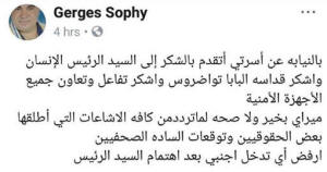 ثم إستقبل البابا بعد ذلك أحد المسئولين من أمن الدولة وقال: أنا كنت بتكلم بمنتهى الصراحة وهو كان متجاوب جدا وروحه طيبة ااغاية وذكرنا التفاصيل وكيف تنتهى وفعلاً منذ أسبوعين وأكثر لم نسمع عن أى حادثة ونعتبر أن الموضوع منتهى لئلاً تقلب من هنا ومن هنا موش كويس