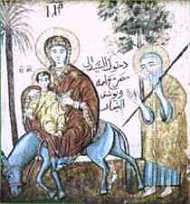 ++++++++++++++++++++++++++++++++++++++++++++++++++++++++ المراجــع (1) أجمعت كل المصادر الشرقية والغربية أن وسيلة السفر التى حملت السيدة العذراء كانت حماراً , وسار يوسف إلى جانب الحمار ممسكاً بمقوده حسب المتبع فى تقاليد الشرق , ولم تكن هذه الصورة غريبة فى الكتاب المقدس فقد قدمها لنا سفر الخروج واصفاً رجوع موسى النبى من بلاد المديانيين إلى مصر : " فأخذ موسى إمرأته وولديه وأركبهم على الحمير , ورجع إلى أرض مصر وأخذ عصا الله بيده .. " ( الخروج 4: 20" (2) راجع انجيل كاروز الديار المصرية مرقس (مر15: 40) و (مر16: 1) ومن المصادر التاريخية وغيرها التى التى ذكرت أن سالومى أو سالوما قد صحبت العائلة المقدسة إلى مصر من بيت لحم هى :- ا- السنكسار القبطى .. وضع الأنبا بطرس الجميل أسقف مليج والأنبا ميخائيل أسقف أتريب , والأنبا يوحنا أسقف البرلس - القاهرة 1936 الجزء الثانى ص 143 تحت اليوم 24 من شهر بشنس . ب- وفى الذكصولوجية القبطية موجودة فى مكتبة الفاتيكان ورد فيها : " فقام يوسف , واخذ العذراء , جـ - وفى الدفنار تحت يوم 8 بؤونة حيث يقال نفس العبارة السابقة باللحن الأدام : " ويذكر أسم سالومى مرة أخرى فى اللحن الواطس تحت نفس اليوم . د - وفى ميمر البابا تاوفيلس بطريرك الأسكندرية من المخطوطات الأثيوبية . Legends of Our Lady Mary the Perpetual Vergin and Her Mother Hanna. Translated from the Ethiopic Manuscrpts by E.A.W. BUDGE, London, 1922,p. 67. هـ - ميمر البابا تيوثيئوس بابا الأسكندرية BUDGE, Legends of Our Lady p. 84. P. De. LAGARDE, AWBYPTIACA, Gottingen, 1896, F. ROBINSON, Coptic Apocryphal Gospel, in Texts and Studies, vol. IV, 2 (Cambridge) 1896 p. 133 ز- ورد أيضاً فى كتاب تاريخ الكنيسة القبطية لـ منسى القمص ص3 (3) راجع أنجيل القديس متى ( متى 20: 20) (متى27: 56) (4) (سفر التكوين 12: 1) (5) الرسالة إلى العبرانيين 11: 8) (6) أو فى ترجمة أخرى فتتزلزل (7) (سفر أشعياء 19: 1) (8) ورد فى كتاب الدفنار تحت اليوم 24 من يشنس (طرح الآدام) .. " أسبح المسيح مخلصى , وامجد أمه العذراء السحابة الخفيفة التى نزلت إلى مصر , أعنى مريم العذراء القديسة وهى حاملة ربنا يسوع المسيح" وجاء أيضا فى طرح واطس : " نزل المسيح إلى مصر على سحابة خفيفة , التى هى مريم والدة الإله القديسة , ومخلصنا يسوع المسيح راكباً على ذراعيها الطاهرين وهو طفل صغير كتدبيره .. " راجع أيضاً كتاب " ألمة القبطية وكنيستها الرثوذكسية " بقلم الإرشيدياكون فرنسيس العتر , القاهرة - سنة 1953 ص 11 (9) راجع مقال " دخول السيد إلى مصر " للأب يعقوب موزر - مجلة الصلاح - مايو 1933 ص 235 (10)" Comme I' idole de Dagon se brisa devant I'arche saint, ainsi les idoles de I' Egypte tombe'rent a' Ia'rrive'e de Je'sus, ne pouvant supporter sa pre'sence". M. JULLIEN. L'Egypte, p. 243. (11) PALLADIUS. The Paradius, london. 1906 vol, p. 304. ****************************************************************** http://files.ww.com/files/45183.html فيديو باللغة الإنجليزية.. من التليفزيون الامريكى - فيلم وثائقى جديد - رحلة العائله المقدسه فى مصر-حوار مع البابا شنوده-وزياره الاماكن التى زارتها العائله المقدسه