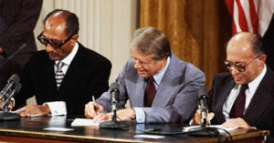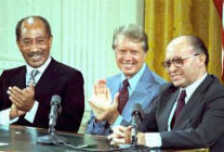 | | معاهدة السلام مع إسرائيل مثلت انقلابا في استراتيجية مصر وفي الأوضاع الإقليمية في الشرق كان الرئيس المصري الراحل أنور السادات وقع معاهدة السلام في واشنطن مع مناحم بيغين مؤسس حزب الليكود، بضمان أمريكى لتنفيذها وقد شهد التوقيع الرئيس الأمريكى كارتر، رئيس جمهورية مصر العربية، بعد توقيع اتفاق كامب ديفيد. واشنطن، 17/ 9/ 1978 (الأهرام ، القاهرة ، 19/9/1978) عزيزي الرئيس كارتر، في هذه اللحظة التاريخية، اود أن أعرب لك عن تهنئتي القلبية وتقديري لك. فعلى مدى أيام وليال طوال، كرست وقتك وطاقتك في السعي لتحقيق السلام. وقد كنت غاية في الشجاعة عندما اقدمت على هذه الخطوة العملاقة، حين نظمت هذا الاجتماع، اذ كان التحدي كبيرا والمخاطر جسيمة، ولكن تصميمك كان كبيرا بنفس المستوى، فقد التزمت بأن تكون شريكا كاملا في عملية السلام. ويسعدني أن أقول إنك احترمت هذا الالتزام. ان التوقيع على الوثيقة الخاصة بالإطار لتسوية السلام الشاملة، انما يحمل معنى يفوق بكثير حدود الحدث، فتوقيع هذه الوثيقة يعطي اشارة بدء لمبادرة سلام جديدة تقف الأمة الأمريكية خلالها، في القلب من العملية كلها. وفي الأسابيع القادمة، سيكون من الضروري اتخاذ قرارات هامة اذا كنا سنواصل السير على طريق السلام. ويتعين علينا أن نعيد تأكيد ايمان الشعب الفلسطيني بالسلام. واستمرار دوركم النشط ضرورة لا غنى عنها، فنحن في حاجة الى مساعدتكم والى تأييد الشعب الاميركي لنا. ودعني انتهز هذه الفرصة لأشكر كل مواطن أميركي، بلا استثناء، على اهتمامه الصادق بقضية شعوب الشرق الأوسط. صديقي العزيز، لقد جئنا الى كامب ديفيد بكل ما لدينا من نوايا حسنة وإيمان، وتركنا كامب ديفيد منذ بضع دقائق، ونحن نشعر بأمل والهام متجددين، ونحن نتطلع الى الأيام القادمة بعزم اكبر على مواصلة السعي لتحقيق هدف نبيل هو هدف تحقيق السلام. ان مساعديك الأكفاء لم يدخروا اي جهد في سبيل التوصل الى هذه النتيجة التي تدعو للسعادة، وإننا نقدر الروح والتفاني اللذين تحلوا بهما. وجميع من استضافونا في كامب ديفيد وفي ولاية ميريلاند انما أظهروا كل كرم وحسن ضيافة، لذلك فاني اقول شكرا لكل واحد فيهم ولجميع الذين يشاهدون هذا الحدث الجلل. فلنشترك معا في صلاة لله، عز وجل، ليسدد خطانا، ولنتعهد ان نجعل من روح كامب ديفيد فصلا جديدا في تاريخ أمتنا. وأشكرك، سيدي الرئيس. ********************************************كلمة الرئيس أنور السادات، بعد توقيع المعاهدة المصرية - الإسرائيلية في واشنطن. واشنطن، 26 / 3 / 1979 كراس "حلة السلام" زيارة الرئيس أنور السادات للولايات المتحدة الأميركية، 25 - 29 / 3 / 1979، ص 52 - 55، الصادر عن الهيئة العامة للاستعلامات، القاهرة، جمهورية مصر العربية الرئيس كارتر .. الأصدقاء الأعزاء .. ان هذه اللحظة بالتأكيد من أسعد اللحظات في حياتي، انها لحظة تحول تاريخي ذات أهمية كبرى لكافة الأمم المحبة للسلام. ان الذين وهبوا القدرة على الرؤية لا يمكن أن يخطئوا فهم أبعاد مهمتنا المقدسة. ومنذ البداية أدرك الشعب المصري، بما لديه من تراث ووعي تاريخي فريد، معنى هذا المسعى وقيمته وفي كافة الخطوات التي قمت بها لم أكن أؤدي مهمة شخصية، وإنما كنت أعبر فحسب عن إرادة أمة انني فخور بشعبي وبانتمائي له واليوم يبزغ فجر جديد من ظلام الماضي، ويبدأ فصل جديد في تاريخ التعايش بين الأمم، وهو فصل جدير بقيمنا الروحية وحضارتنا فلم يواجه الرجال من قبل مثل هذا النزاع المعقد المشحون بالعواطف كما لم يكن الرجال من قبل في حاجة إلى مثل هذه الشجاعة والخيال لمواجهة تحد واحد كما لم تنل قضية من قبل مثل هذا الاهتمام الكبير في كافة أرجاء المعمورة الأربعة. ان الرجال والنساء ذوي النية الحسنة قد عملوا طوال الليل وإناء النهار من أجل الوصول إلى هذه اللحظة السعيدة لقد سعى المصريون والإسرائيليون على السواء لتحقيق هدفهما المقدس غير هيابين بالصعوبات والتعقيدات لقد اعطى سخاء المئات من الأفراد .. المخلصين في كلا الجانبين من فكرهم وجهدهم لجعل هذا الحلم العزيز حقيقة ح