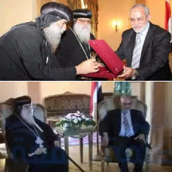 أسوأ حدث فى تاريخ ألأقباط مطران البحيرة يذهب لمكتب الإرشاد مقر ألإخوان المسلمين اليوم السابع الأحد، 08 يوليه 2012 م مقالة بعنوان بديع يلتقى الأنبا باخوميوس فى مكتب الإرشاد بالمقطم التقى المرشد العام لجماعة الإخوان المسلمين د. محمد بديع، وممثل الكنيسة المصرية الأرثوذكسية الأنبا باخوميوس والأنبا بيمن أرميا، وذلك لمناقشة مجموعة من القضايا الهامة التى تصب فى مصلحة الوطن فى المرحلة المقبلة. رتب لهذا اللقاء السياسى الكبير رامى لكح، الذى يسعى لتقارب وجهات النظر بين الكنيسة المصرية وجماعة الإخوان المسلمين، من أجل تفادى أى نوع من الخلافات، التى من الممكن أن تؤثر على مسيرة النهضة فى المرحلة القادمة. فى الأحد 08 يوليو 2012 كتب: هاني الوزيري ومصطفى رحومة - مقالة بعنوان جريدة الوطن لأول مرة.. الكنيسة تزور مكتب إرشاد "الجماعة" فى لقاء لم يعلن عنه مسبقا، زار الأنبا باخوميوس، قائم مقام بابا الكنيسة الأرثوذكسية، عصر اليوم، المركز العام لجماعة الإخوان المسلمين، والتقى بالدكتور محمد بديع، المرشد العام للجماعة، لمناقشة التطورات السياسية على الساحة ووضع الأقباط داخل الجمعية التأسيسية للدستور، ومطالب الأقباط بالإبقاء على المادة الثانية من الدستور مع إضافة فقرة احتكام غير المسلمين إلى شرائعهم. وحضر اللقاء الأنبا أرميا، سكرتير البابا الراحل شنودة الثالث، ورجل الأعمال القبطى رامى لكح، نائب رئيس حزب الإصلاح والتنمية. وقال لكح لـ"الوطن": "إن اللقاء كان وديا يتسم بالحرارة وجو الصداقة بين باخوميوس وبديع"، موضحا أن العلاقة بين مكتب الإرشاد والكنيسة مفتوحة منذ زيارة الدكتور بديع للبابا شنودة الثالث، نافيا قيامه بدور الوساطة للقيام بالزيارة. وقال الدكتور عبد الرحمن البر، عضو مكتب الإرشاد لـ"الوطن": "الإخوان لا يرون أى إشكالية فى العلاقة مع الاقباط". وأضاف:"من الطبيعى أن تلتقى القيادات المصرية الوطنية"، موضحا أنه سبق أن زار المرشد الأنبا باخوميوس فى عزاء البابا شنودة الثالث. ورفض البر الحديث عن تطمينات إخوانية للأقباط، وقال: "هذا الأمر مرفوض فى الدولة المصرية، التى ترفض أن يكون فصيل فيها هو الذى يطمئن أو يخوف". وشدد على أن موقف الإخوان مع بقاء المادة الثانية فى الدستور بنصها الحالى "مبادئ الشريعة الإسلامية هى المصدر الرئيسى للتشريع". فى الوقت الذى أشارت فيه قيادات كنيسية إلى عدم علمها بزيارة القائم مقام إلى مقر مكتب الإرشاد، وقال الأنبا مرقس، أسقف شبرا الخيمة ورئيس لجنة الإعلام بالمجمع المقدس: " ليس لدي علم بهذه الزيارة". |