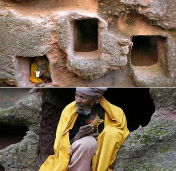 ![]() ويختلف الأمر فى أثيوبيا حيث تجد الكثيرين من الرهبان فى شقوق الأرض والجبال والبرارى ما زالوا يخافظون على حياة التقشف وهذا هو أحدهم Monasticism is an important feature of Ethiopian Orthodox Christianity. For Ethiopians, monasticism is a higher form of Christianity. This might be because Christianity itself was introduced to the country by monk missionaries. The Rules of Pachomius, the father of coenobitic monasticism, were among the first religious books translated into the local language, along with the scriptures of the New Testament. The monasteries these monks and their followers established served the Church very well for centuries as centers of education and the production of its literature. Despite setbacks from the destruction's inflicted, the monastic life still persisted in different corners of the country. |