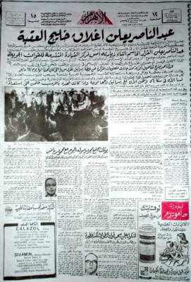 وإذا أرادت إسرائيل أن تهدد بالحرب فنحن نقول لها: «أهلاً وسهلاً» ولم ينس الرئيس عبدالناصر دور إحدى دول الحلف الإسلامى فى إمداد إسرائيل بالبترول وهى إيران، وقال إن كل البترول الواصـل إلى ميناء إيلات يصلها من إيران وأنه إذا أرادت دولتا الحلف الإسلامى العربيتان- السعودية والأردن- أن تفعلا شيئاً فلتقنعا إيران حليفتهما وشريكتهما فى الحلف الإسلامى بالامتناع عن إمداد إسرائيل بالبترول.