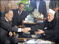 والتقى سولانا منسق السياسات الخارجية في الاتحاد الأوروبي خافيير سولانا في القاهرة امس بالرئيس المصري حسني مبارك ووزير خارجيته احمد أبوالغيط وعمرو موسى أمين الجامعة العربية وكذلك شيخ الأزهر سيد طنطاوي.