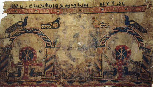 جريدة وطنى 21/2/2011م د.آمال جورجي المنسوجات من أهم أنواع التحف التي يذخر بها الفن القبطي,ومن أشهر المناطق التي اشتهرت بالمنسوجات القبطية مدينة أخميم بالوجه القبلي ومدينة أنصنا التي كانت تعرف باسمأنتينوي. تعددت أنواع المنسوجات من حيث مادة الصنع من الألوان والزخارف. والصورة المنشورة لقطعة من النسيج ذي الوبرة, الأمر الذي ساعد علي تماسك الألوان,ويظن أنها كانت تستخدم كستارة لأحد الهياكل بالكنيسة فهي غنية بالزخارف المعبرة ومنها الحمامة والطاووس علاوة علي الزخرفة الكتابية. ويتوج هذه الزخارف مونوجرام السيد المسيح وهما الحرفان الأولان من الكلمةخريستوسداخل صليب ذي عروة وهي أيضا علامة الحياة الغنخعند المصري القديم. هذه التحفة بالمتحف القبطي إلا أنها مجهولة المصدر وتؤرخ بالقرنين السادس-السابع. جزء من نسجية جدارية كبيرة من الكتان المخلوط بالصوف، ترجع للقرن السادس الميلادى ، متعددة الألوان، بها زخارف على شكل أعمدة وبائكات بداخلها صليب على شكل مفتاح الحياة وبداخل عروته مونجرام اسم السيد المسيح، وتظهر الطواويس وطيور الحمام |