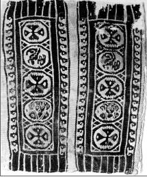 جريدة وطنى 11/1/2010 l كم قميص بالمتحف القبطي من القرن الخامس/ السادس الميلادي عليه زخارف لون واحد, قوامها شريطان قصيران, وبداخل كل منهما مثمنات داخلها صلبان وأشكال مختلفة, وعلي جانبي كل شريط زخرفه عبارة عن محاليق العنب أو موج البحر. رقم الأثر بالمتحف القبطي 6604 |