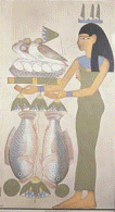 ***************************************** إله الحقول سخت - صورة ملونة عليها رسم لآلهة الحقول سخت وهى تحمل المنتجات الزراعية من طيور وسمك وغيره - معبد امنحتب بوادى السبوعة بالنوبة Agriculture museum