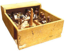 نموذج من أثاث مكت رع الجنزى، يصور نجارين في ورشة، مشغولين بما يصنعون من الأعمال الخشبية المختلفة