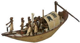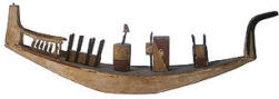 هذه القطعة الفنية هى عبارة عن نموذج لمركب بمقدمة ومؤخرة مرتفعتين. ولهذه المركب كابينة صغيرة مطلية بالأخضر والأبيض يجلس بداخلها صاحب