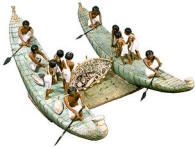 وكان المفترض أن تستخدم أكبر النماذج من هذه المراكب وأكثرها زخرفة فى نقل روح الملك رمزياً من مقبرته فى طيبة إلى أبيدوس، مركز عبادة أوزوريس سيد الموتى. وتخرج الصوارى من كبائن مزينة بزخارف مشرقة تقع فى منتصف المسافة بين مقدمة المركب ومؤخرتها