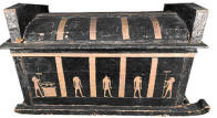 وصمم هذا التابوت على شكل صندوق على زحافة، ليس له قاع، بل إن جوانبه كانت ترتكز على أرضية المقبرة. وينزل عمود هيروغليفى من أعلى التابوت إلى أسفل.