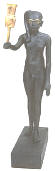 تمثال إيحى ابن الربة حتحور حاملاً الشخشيخة ويقف على قاعدة مستطيلة حاملاً الشخشيخة فى يده اليمنى ،