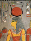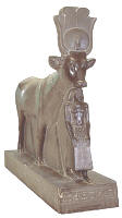 |  حتحور Hathor وقد عبدت الآلهة حيحور من عصر الدولة القديمة وقد شيد قدماء المصريين لها مقابر وحنطوها ووضعوها فيها وكان رمزا الثور رمزا للفرعون نفسه. في "ترنيمة لآمون ،" من الصعب التمييز بين فرعون من الثور. وكان عنوان الترنيمة هو : "العشق من Amunre (آمون رع) ، ثور من Heliopolus هليوبوليس رئيس جميع الآلهة ، وإله الخير ، والحبيب ، الذي يحيي كل ما هو دافئ ، وإلى كل قطيع جيدة". اعتبرها المصريّون المعبودة الأم، سمُّيت (حتحور) في (منف) (حتحور الجمّيزة) أي التي تنتسب لشجرة الجميز المقدّسة، وقد صوِّرت بشكل بقرة أو سيّدة لها وجه بقرة، نسبها الإغريق إلى (أفروديت) كانت حاكمة السماء وجسمها الحقيقي، واعتبرت مربّية ملك مصر، وأصبحت في بعض العصور هي و المعبودة (إيزيس) معبوداً واحداً، وقد قدّست في مدينة (دندرة) حيث معبدها الشهير، كما جعلها المصريّون ربّة الأماكن البعيدة مثل (سيناء) و(بلاد بونت)، واعتبرت في (منف)و (طيبة) حارسة الجبانة ********************************************************************** تمثال الربة حتحور على هيئة بقرة