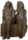******************************************************** تمثال لرجل يحمل تمثالاً صغيراً غالباً يمثل المعبود بتاح. ويضع الرجل على رأسه شعراً مستعاراً ينتهى بخصلات على كتفيه ويخفى الجزء ********************************************************