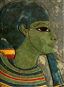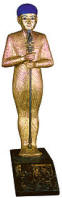 حفظ ثمانية وعشرون تمثالا لأرباب ملفوفة في الكتان في مقاصير ذات صبغة سوداء، لحماية الملك في رحلته في العالم السفلي، ومنها هذا التمثال الذي