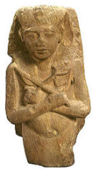 وقد ربط الملك في التمثال، بالإله أوزوريس؛ مما يدخله مباشرة تحت رعايته. وبذلك يمكن للملك أن يشاركه في القرابين المقدمة إليه ويتقبل معه الصلوات.