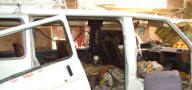 السيارة التي كانت تقل قوة الشرطة وقد حطمها الأهالي ------------------->