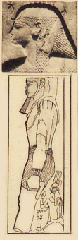 رأس الاميرة بنت عنتا ابنة رمسيس وزوجته وتحتها تمثال أبيها وقد نقشيت بين ساقية صورة لها هى التى التى أكدت للعالم أن التمثال لابيها العظيم