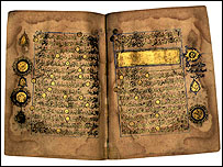 نقلاً من وكالة الأنباء العاليمية بى بى سى بتاريخ الأربعاء 24 أكتوبر 2007 م عن مقالة بعنوان [ بيع نسخة من القرآن بأكثر من مليوني دولار ]