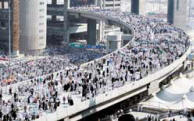 الألاف من المسلمين على جسر الجمرات في طريقهم لرجم إبليس
