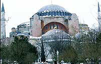أكبر كنيسة فى الشرق يحولها المسلمون إلى جامع بالقوة والإجبار ثم تتحول إلى متحف فى العصر الحديث ورغم أن كنيسة أجيا صوفيا قد تحول إلى متحف لا تقام فيه أية صلوات إلا أنه لا تزال صور الماضي شاخصة تطل من أركانه شاهدة على إغتصاب الإسلام للمقدسات الدينية كما فعلوا فى الجامع الحموى فى دمشق والكثير من الكنائس فى مصر . وقد تحوَّل هذا المسجد الآن إلى متحف، وقد راعني ما رأيت: قباب عالية تملؤها خطوط تخطف البصر بجمالها، وعلى جانبي