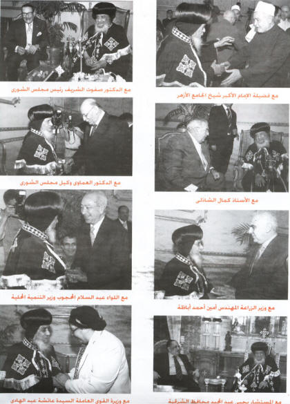 المهنئون بعيد القيامة ** السيد الرئيس محمدحسنى مبارك بمكالمة تليفونية كريمة وبرقية رقيقة كما أوفد السيد كمال سعيد زادة لحضور القداس ** فضيلة الإمام الأكبر د / سيد طنطاوى شيخ الجامع الأزهر . ** السيد صفوت الشريف رئيس مجلس الشورى وأمين عام الحزب الوطنى الديمقراطى ** السيد كمال الشاذلى رئيس المجالس القومية المتخصصة ، ومن السادة الوزراء ** د/ حمدى زقزوق وزير الأوقاف ، ووفد من شيوخ الوزارة . ** اللواء عبد السلام محجوب وزير التنمية المحلية . ** د / أحمد درويش وزير التنمية الإدارية . ** المهندس أمين أحمد أباظة وزير الزراعة . ** اللواء الدكتور ماجد جورج وزير البيئة . ** السيدة عائشة عبد الهادى وزيرة القوى العاملة . ** وزير الحربية أناب اللواء إسماعيل عثمان . ** وزير الداخلية أناب اللواء مجدى عامر . ومن السادة الوزراء السابقين ** د / يوسف والى وزير الزراعة السابق. ** د/ حسين كامل بهاء الدين وزير التعليم السابق . ** د/ ممدوح رياض وزير البيئة السابق . ** د/ فينيس كامل جودة وزيرة البحث العلمى السابقة . ** السيد أحمد العماوى وكيل مجلس الشورى ووزير القوى العاملة السابق . ومن السادة المحافظين ** د / عبد العظيم وزير محافظ القاهرة . ** المستشار يحى عبد المجيد محافظ الشرقية . ومن الشخصيات العامة ** السفير مخلص قطب أمين عام المجلس القومى لحقوق الإنسان ** مصطفى الفقى رئيس لجنة العلاقات الخارجية بمجلس الشعب . ** حمدى السيد نقيب الأطباء . ** الأستاذ سامح عاشور نقيب المحاميين . ** د/ صفى الدين خربوش رئيس المجلس القومى للشباب . ** الأستاذ عباس الطرابيلى رئيس تحرير جريدة الوفد . ** الأستاذ جرجس صالح الأمين العام لمجلس كنائس الشرق الأوسط . ** د/ طارق حجى الكاتب والأديب . ** المستشار ميلاد سيدهم رئيس هيئة قضايا الدولة . ** د/ عبد الأحد جمال الدين (زعيم الأغلبية بمجلس الشعب) ومن رجال الأمن ** السيد اللواء إسماعيل الشاعر مساعد أول وزير الداخلية ومدير أمن القاهرة وبعض مساعديه . ** السيد اللواء هشام أبو غيدة مدير الإدارة العامة لمباحث أمن الدولة بالقاهرة وبعض مساعديه ( العقيد أحند مصطفى ، والرائد حسن عمر) ** اللواء سامى سيدهم مدير مباحث القاهرة . ومن السادة السفراء ** السيدة مارجريت إسكوى سفير الولايات المتحدة الأمريكية . ** السيد دومينلك سفير المملكة المتحدة . ** السيد برند إربل سفير ألمانيا . ومن الشخصيات الدينية المسيحية ** الدكتور القس صفوت البياضى رئيس الطائفة الإنجيلية . ** نيافة المطران منير حنا مطران الكنيسة الأنجلكانية بمصر ** ** ** ** ** ** ** ** ** ** ** ** **