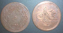 عملة عثمانية ضربت أثناء حكم السلطان عبد الحميد قيمتها 4 ب يعنى 4 بارا 1277م
