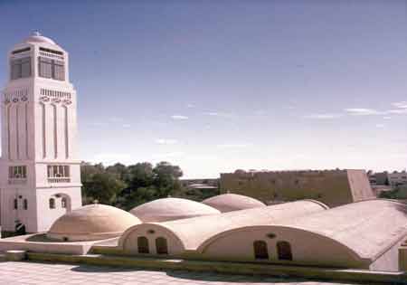 المنارة الجديدة وكنيسة القديس أنبا مقار ويليهم من الخلف الحصن |