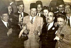 الصورة المقابلة : الريحانى ومعه مجموعه من الفنانين الذين شاركوه فى مشواره الفنى --->