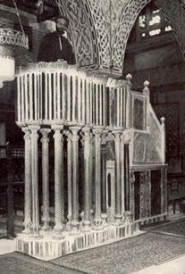 Home Up حامل الأيقونات / سميح لوقا إيزاك فانوس والأيقونة الأيقونستانز الصور وحامل الأيقونات الجداريات1 المقصورات أصالة الفنون القبطية رسوم الكنائس الجدارية الرموز والرمزية بالفن القبطي أعمدة الكنائس والإنبل الطقس القبطى وشكل بناء الكنيسة طقس منارة وأبواب والجرس راغب عياد | |  ذكر الباحث الأثرى جرجس داود فى جريدة وطنى بتاريخ 29/3/2009م السنة 51 العدد 2466 تاج عمود : تاج عمود من الحجر الجيرى بالمتحف القبطى يرجع تاريخ للقرن السادس الميلادى نقوشه البارزة تدل على الدقة والإبداع القنى الذى وصل إليه النحات القبطى من براعة وإبتكار وتظهر فيه نوع من النبات يداعبه الرياح وفى أعلاها شكل صليب داخل إكليل المصدر دير الأنبا أرميا بسقارة بالجيزة - رقم الأثر بالمتحف القبطى 7911 | الإمبل بالكنيسة المعلقة صورة نادرة من الكنيسة المعلقة مصر قديمة تعود لسنة ١٩٢٩ وفيها كاهن الكنيسة المعلقة يقف فوق الامبل الرخامى البديع فى صحن الكنيسة المعلقة الامبل هو المنبر (نلاحظ التقارب الشديد مع لفظ المنبر) ويسمى " الامبن " Ambon وهى كلمة يونانية معناها " المصعد وقد تحرفت فى العربية الى " الانبل " , او " الآمبل " ويصنع من الرخام او الخشب وعدد درجات السلم ١٢ سلمة على عدد تلا مئذنة المسيح وأمبل الكنيسة المعلقة قائم على خمسة عشر عمودا وزينته رومانية وفى مقدمته عمود مختلف يرمز للسيد المسيح وكل عمودين مع بعض فى إشارة ان السيد المسيح ارسل تلاميذه اثنين اثنين وهناك عمودين بلون اسود يشير احدهما الى يهوذا الذى خان المسيح وآخر يرمز الى توما الرسول الذى شك فى قيامة السيد المسيح ... وهو يرجــع الى القرن الخامس الميلادى ويحتوى الأنبل على أنواع من الزخارف التي تشمل الصليب الإغريقي والدوائر التـى حول الصليـب والأصـداف وتعلوه القبة التي تحتوى بداخلها على رسم مروحة ويرتكزعلى خمسة عشر عموداً متعددة الأشكــــال وكلها من الرخام وبعضها ملفوف والآخرمضلع ومطعمة تطعيما جميلا بقطع من الرخام الملون كما توجـــد نقوش بارزة بعضها علي شكل قوقعة وبعضها علي شكل صلبان داخل أكاليل نباتية والوصول إليه يتم بواسطـة سلم رخامي عدد درجاته اثنتا عشرة درجة رمزلتلاميذ السيد المسيح ولم يبق منها سوي الأربع درجـــات العليا فقط والاعمدة منها اثنان ملتصقان بجسم المنبر يمثـــلان القديسين مرقس ولوقا والأعمدة الأخــــرى الثلاثـــة عشر كل منها منفصل عن الآخر تحمل تكوين المنبــر فالأول الذي في المقدمـــــة يشيرإلي السيد المسيح أما الاثنا عشر عمودا فتمثل التلاميذ الاثني عشرويلاحظ أن كل عمودين متقابـلان ومتشابهان مع بعضهما ويختلفان عن العمودان الأخرين كرمزلأن السيد المسيح أرسل رسله اثنين اثنين ويلاحــظ وجود عمودين بلون مختلف الأول بلون أسود ويشير إلى (يهوذا الاسخريوطى ) الخائن الذي دل اليهود على مكــــان السيد المسيح ثم شنق نفسه والعمود الثاني بلون رمادي ويشير إلى (توما)الذى لم يكن من تلاميذ السيد المسيح و الذى دب الشك فى قلبه من جهة قيامة ربنا يسوع المسيح من بين الاموات وأمن بعد ظهور السيد المسيـــــح لة فى العلية مع التلاميذ الاثنى عشرومما يلفت النظر هنا فى الأعمدة الرخاميــة أطوالهـــا المتساويـــة ونقوشها المستوحاة من ورقة الأكانتس أوالتيجان الكورنثية أى أنهــا رومانيــــة الطــرازولابد أنها كانت قائمة فى معابد رومانية وتوجد في الأنبل العديد من النقوش ذات المعانــي العميقـــة مثل الصليــب الذي يشير إلى الآلام والدائرة التي حول الصليب التى تشير إلى الاضطهادات أما القاعدة المكونة من ثلاثة أجزاء تشير الى الثالوث القدوس وكان الانبل يستخدم للقراءة وإلقاء العظات فكان يصعد علية الآب الآسقف اوالكاهن للوعظ وكان القديس يوحنـا ذهبى الفم يعظ دائما من فوقه لتسميع كل الشعب عظاته وتحت الانبــل دفنــت بعض التوابيت التى تحتوى على رفـــات بعض البطاركــــــة مثل رفات القديس البابا الأنبا أبرام بن زرعة السريانى صاحب أعجوبة نقل جبل المقطم في عصر الخلي