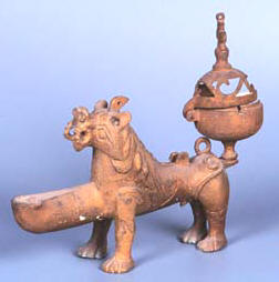 مكان الأثر المتحف القبطى بمصر القديمة القاهرة وترجع صناعة هذه المسرجة للقرن 12 االمادة : معدن البرونز مسرجة من المعدن مصنوعة على شكل جمل وفتحة ملئ الزيت الذى يستخدم فى الإنارة على جانبى فتحة الجمل ***************************************** |