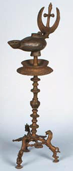 مكان الأثر المتحف القبطى بمصر القديمة القاهرة وترجع صناعة هذه المسرجة للقرن 16 االمادة : معدن البرونز مسرجة من المعدن ذات يد ترتكز على قاعدة مرتفعة نستديرة لها فتحة الملئ بالزيت وغطاء مستدير وفوهة الشعلة ***************************************** |