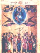 ذكر الباحث الأثري جرجس داود جريدة وطنى 21/12/2008م السنة 50 العدد 2452 ورقة من مخطوط علي رق تمثل بشارة الملاك غبريال للعذراء مريم من مجموعة قرية حامولي بالفيوم,وترجع إلي عام 913م/914م من مكتبه مورجان بنيويورك,وتمثل رئيس الملائكة غبريال ملاك البشارة رافعا يده اليمني ويشير بإصبعه نحو العذراء ويمسك في يده اليسري عصا تنتهي بصليب,ونقرأ بين العذراء والملاك بالقبطية##السلام لك أيتها الممتلئة نعمة الرب معك##(لو1:28)بينما تجلس العذراء علي عرش وتمسك بيدها اليمني مغزلا وتشير بيدها اليسري بإصبعها نحو الوجه لتستمع إلي كلام الملاك بانتباه,وأمامها سلة مملؤة بالصوف.وأعلي الصورة كتابة قبطية##القديسة مريم العذراء وغبريال المبشر##وحول رأس رئيس الملائكة غبريال والعذراء مريم الهالة النورانية.والرسم محاط ببرواز علي شكل صلبان صغيرة. ************************************ ذكر الباحث الأثري جرجس داود جريدة وطنى 24/5/2009l السنة 51 العدد 2474 صفحة من مخطوط بالمتحف القبطي من القرن الثالث عشر الميلادي تمثل صعود يسوع المسيح للسماء,وتنقسم إلي قسمين,القسم العلوي يظهر فيه يسوع المسيح جالسا علي العرش داخل الهالة الكونية يمسك الكتاب المقدس بيده اليسري ومانحا البركة بيده اليمني ومكتوب باللغة القبطية يسوع المسيحوحول رأسه الهالة النورانية والتكون كله يحمله الأربعة ملائكة المنيرين والجزء السفلي من الصورة نري العذراء مريم في الوسط وعلي جانبها ملاكان ثم الأحد عشر تلميذا,ستة منهم في جانب وخمسة في الجانب الآخر,حيث أن متياس التلميذ الثاني عشر الذي حل محل يهوذا لم يكن قد انتخب بعد,وحول رؤوسهم جميعا الهالات النورانية ومكتوب أعلي المخطوط باللغة العربيةتاريخه سنة966للشهداء الأطهار ووسط المخطوط الرسل المنتخبين. **********************************************