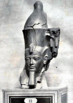 قصر الملك مينا في مدينة (ثنى) بالقرب من "أبيدوس" (البلينا الحالية مركز سوهاج) ********************************************** تاج الشمال تاج الوجه البحري (الدلتا) التاج الأحمر : مملكة الدلتا في الشمال يعثر على رأس الملك أوسركاف هذا في معبد الشمس، الذي أنشأه الملك وكرسه لعبادة رع رب الشمس في أبوصير. وقد جاء هذا الرأس الملكي، الذي يتخذ تاج الوجه البحري الأحمر فى عصر الأسرة الخامسة. وكان يعتقد أنه الربة نيت حين كشف عنه، ولكن لوحظ من شارب نحيل على الشفة العليا، بما يثبت نسبة الرأس إلى تمثال ملكي . يعلوه من الخلف قضيب عمودي غرس فيه عند منبته عود مائل ينتهي بالتفاف حلزوني وكان أهل الشمال يعتقدون بحماية إلهة على هيئة ثعبان (صل) تدعى وازيت الحمراء ،كما اتخذوا من نبات البردي شعارا لهم، الملك الدعى في الشمال لقب صاحب النحلة التي تمثل الشمال، لأبعاد العرض ٢٥ سم الطول ٢٦ سم الارتفاع ٤٥ سم عاصمتهم فهي مدينة (بو) في إقليم بوتو (عند تل الفراعين الحالية مركز دسوق). كانت مقسمة إلى عدد من المقاطعات (المديريات)، ويحكم كل مقاطعة أمير، وكان الأمراء يتنازعون السلطة فيما بينهم، وكان زعيمهم أمير منهم يدعي (واع شي)، أو كما يسمونه في بعض الأحيان (واش)، كان أميرا لمقاطعة الخطاف، ثم اتخذ لنفسه الألقاب الملكية، ووضع على رأسه التاج الأحمر |