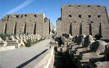 معبد الأقصر إلي معبد الكرنك عبر طريق الكباش. فمنذ أكثر من 5 آلاف عام قام ملوك مصر الفرعونية في طيبة ببناء طريق الكباش "طريق أبوالهول" ذلك الطريق الذي كان يربط بين معبدي الأقصر والكرنك لتسير به المواكب المقدسة للملوك والآلهة في احتفالات "الأوبت" من كل عام. فكان يسير الملك يتقدمه علية القوم من الوزراء وكبار الكهنة ورجال الدولة خلف الزوارق المقدسة التي كانت تحمل تماثيل الآلهة. بينما يصطف أبناء الشعب علي جانبي الطريق يرقصون ويلعبون في بهجة وسعادة..