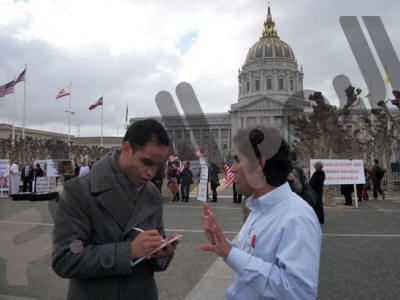 بالصور أقباط المهجر بكاليفورنيا يستغيثون بأوباما اليوم السابع السبت، 30 يناير 2010 - 14:01 احتشاد أقباط المهجر بكاليفورنيا كاليفورنيا ـ إبراهيم بدوى احتشد أمس، الجمعة، العشرات من المسيحيين المقيمين بشمال ولاية كاليفورنيا أمام مبنى سيتى هول بمدينة سان فرانسيسكو، حاملين صورا ولافتات تندد بحادث نجع حمادى، الذى راح ضحيته 6 مسيحيين وآخر مسلم فى عيد الميلاد، |