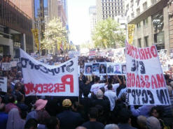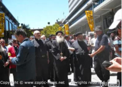 | This rally was indeed one of the most successful ever held by the Coptic Australian community. All of the Sydney CBD stopped their daily grind in order to not only observe the protest, but for some, to even participate. Some of them held up banners, whilst others were reduced to tears. All however, conceded that they were thankfully informed of an issue that they were unaware of. Additionally, a petition was circulated throughout the crowd before being handed to the Department of Foreign Affairs, as was a letter to the Prime Minister of Australia, Kevin Rudd. Undoubtedly, on this day, Martin Place and indeed Sydney, came to a standstill at the command of the Coptic protest. . | The success achieved has propelled the rally organisers, youth and the clergy to continue in their quest for human rights in Egypt, particularly for our Coptic brothers and sisters. Like the initial plan hatched on that day, six days before the protest, this protest is merely the beginning of a long road to correct the abuses occurring in Egypt. The Coptic Orthodox Diocese of Sydney and its affiliated regions, would like to thank the police who escorted the march, the security and ushers who guided the protesters, the dignitaries for their attendance, the clergy for their support, the rally organisers for their efforts, and finally, the congregation who not only participated, but who were willing to listen and understand the Coptic plight. Thank you. The Coptic Orthodox Youth of Sydney |