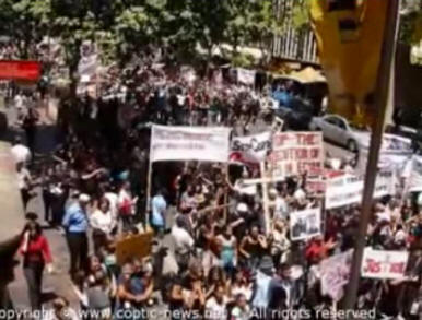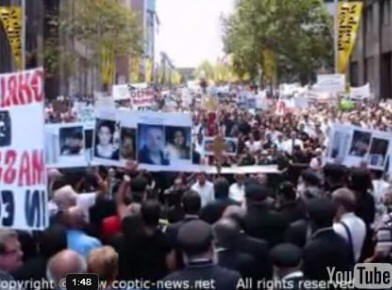 | All these efforts compounded to result in the success that was the Sydney rally, held for the Coptic martyrs of Nag Hammadi and all the Coptic martyrs in Egypt’s bloody history. A minimum of 7000 – 8000 Copts gathered at 12pm at Hyde Park, Sydney to march for the voiceless Copts in Egypt. Several media outlets were present at the rally, ranging from TV stations, to radio stations to newspaper outlets. All were interested in what the Copts of Sydney had to say. Church hymns and prayers commenced the march and were chanted throughout the procession. The atrocities committed against the Copts were read out soon after, before chants demanding equality, justice and an end to persecution dominated the march.