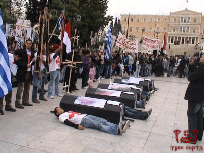 موسوعة تاريخ أقباط مصر - coptic history بقلم عزت اندراوس مسيرة أمام مبنى البرلمان اليوناني في أثينا |