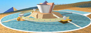خلال المؤتمر الصحفى الذى عقده وزير الثقافة اجتماعه مع الفريق الدولي برئاسة الخبير البريطاني ستيفان جرنبرج، والمكلف بتصميم القاعات الداخلية للمتحف المصرى الكبير ووضع السيناريو المتحفى للمتحف المصرى الكبير بميدان الرماية وطريق القاهرة - الإسكندرية الصحراوى، والذي سيقام على مساحة 117 فدانا (الصورة الجانبية رسم تخطيطىمجسم للمتحف المصري الكبير).