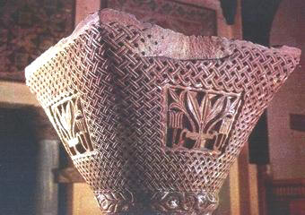 وطنى 24/1/2011م د.آمال جورجي تحفة نادرة وهي جرن معمودية علي جوانبه الأربعة نقش يمثل شجرة الحياة وإن كان الفنان القبطي قد تأثر بهذا العنصر الفني من فنون الشرق إلا أنه آثر أن يصوره في هذه التحفة تجسيما للقول الإلهي إن المعمودية هي عربون الحياة الأبدية. كما هو معروف أن الفن القبطي فن ديني تعليمي لذلك كان الفنان يشرح ويعلم العقيدة عن طريق أعماله الفنية. هذا الإناء مصنوع من الرخام وهو مجوف وتوجد بأسفل أحد جوانبه فتحة لخروج الماء منها بعد طقس العماد. إلا أنه استخدم فيما بعد تاج عمود معروض بالمتحف القبطي. هذا الأثر ملئ بالزخارف أسهب في تفاصيلها عالم الآثار القبطية الألماني الأصل.J.strxigowski في كتابه koptische kunsx . |