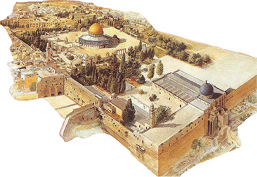 المسلمين يعتبرون ان هيكل سليمان هو مسجد وهو بقايا هيكل سليمان الاول الذي بناه النبي سليمان عليه السلام عام 1005 ق. م. وهدمه نبوخذ نصر في عهد الكلدانيين عام 585ق. م. الهيكل الثاني بناه هيرود الادومي الاصل عام 18 ق. م. وقد هدمه تيطس الروماني عام 135 ميلادية وهو الذي هدم القدس بكاملها وجعل القدس مستعمرة رومانية كما جاء ذلك في الموسوعة العالمية الجزء العاشر على لسان المؤرخ اليهودي فلافيوس جوزيفوسفي ويعتبر المسلمين أن حائط المبكى هو المكان الذى ربط فيه محمد البراق فى حلقة الأنبياء ( وهناك أسئلة كثيرة حول هذا الموضوع لو طرحت لأنهارت نظريتهم حول حلقة الأنبياء ) وقبل أن نكمل عن التاريخ يجب أن نعرف حقيقة هامة غائبة عن فكر المسلمين فهم يقولون أن ما دام هناك عابد لله فأى بناء يبنه هو مسجد وعلى هذا فهيكل سليمان هو المسجد الأقصى , ولكن هذه الفريضة خطأ لأن اليهود لا يعبدون الله إلاه الإسلام بل عندما نفتح التوراه نجد أن اليهود يعبدون إلاه أسمه إيلوهيم وهنا تتقوض نظرية المسلمين يتألف المسجد الأقصى من رواق أوسط كبير يقوم على أعمدة رخامية ممتداً من الشمال إلى الجنوب، يغطيه جملون مصفح بألوان الرصاص وينتهي من الجنوب بقبة عظيمة الهيئة والمنظر، كروية الشكل تقوم على أربعة دعامات حجرية تعلوها أربعة عقود حجرية، نتج عنها أربعة مثلثات ركنية لتكون بمثابة القاعدة التي تحمل رقب وهناك لوحه تقول : " وبنى القبة عبدالله الإمام المأمون أمير المؤمنين في سنة اثنتين وسبعين تقبل الله منه .." وهنا نجد أن اسم "المأمون" الخليفة العباسي الذى عاش ما بين (198-218 هـ/ 813 – 833م) فهو لم يولد بعد فى سنة التاريخ 72 هـ والفرق بين التاريخيين حوالى 126 سنة وأكثر . ومن المرجح فقد حدث أثناء ترميم القبة التي أمر بها الخليفة العباسي المأمون ، أن قام أحد الفنيين بمحو اسم عبد الملك الخليفة الأموي مؤسس وباني قبة الصخرة، ووضع مكانه اسم "المأمون" ولكنه نسي أن يغير التاريخ حيث تم اكتشاف التزوير العربى الذى يتم دائما فى التاريخ . ************************************************************** صلاح الدين الأيوبى والمسجد الأقصى وحدث أن صلاح الدين عندما استولى على أورشليم من الفرنجة أرسل مجموعة من الصناع والفنانين إلى ويدخل إلى المسجد الأقصى من خلال أبوابه السبعة الموجودة في واجهته الشمالية وتؤدى جميعها إلى إحدى أروقة المسجد السبعة، هذا وأمام الواجهة الشمالية المذكورة ، واجهة أخرى عبارة عن رواق أضيف في الفترة الأيوبية ويمتد من الشرق إلى الغرب، ويتألف من سبعة عقود حجرية تقوم على دعامات حجرية . وبدلاً عن تلك الأبواب السبعة، فقد فتح بابان آخران في كل من الجهة الغربية والشرقية للمسجد ، أما فى الجهة الجنوبية فقد فتح باب واحد وذلك في فترات متأخرة وبالرواق الأوسط من كلا جانبيه الغربي والشرقي ، ثلاثة أروقة في كل جانب موازية له ولكنها أقل ارتفاعاً منه والأروقة الواقعة في القسم الغربي ، غطيت بالأقبية المتقاطعة المحمولة على العقود دعامات الحجرية وتم إنشاؤها في الفترة المملوكية , والقسم الشرقي فقد غطي بسقوف خرسانية محملة على أعمدة وعقود حجرية ، قام المجلس الإسلامي الأعلى بترميمها (1938-1943م)